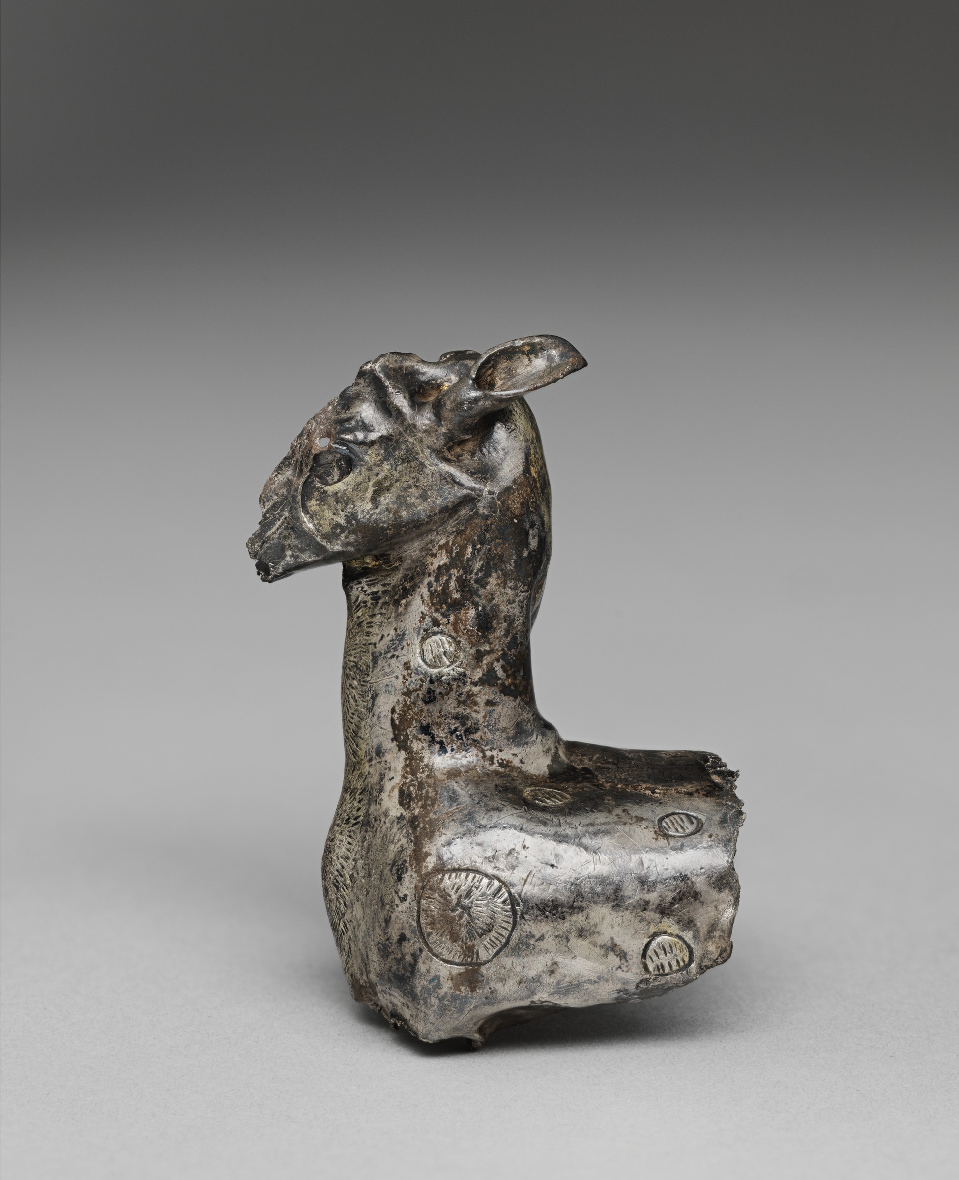 From images and measurements provided by Harvard Art Museum I began to reconstruct the deer by forming the body through raising and attaching lost wax cast ears through soldering.
