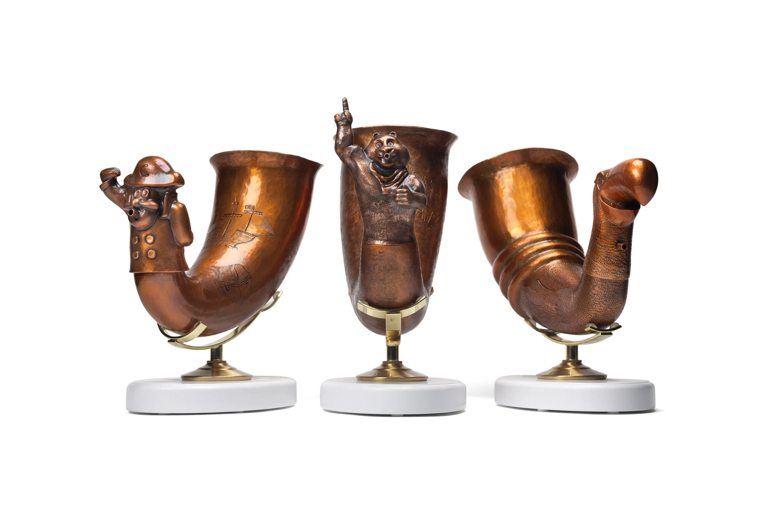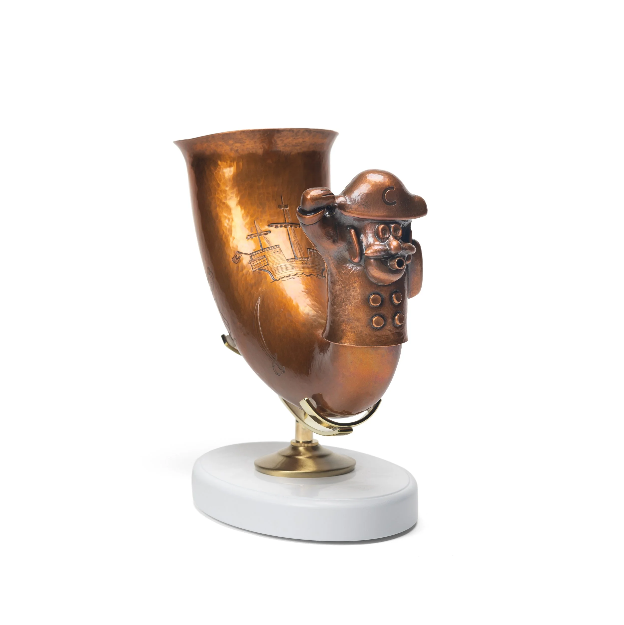 Copper, brass mount, display base13 x 5 x 7.5" - rhyton
