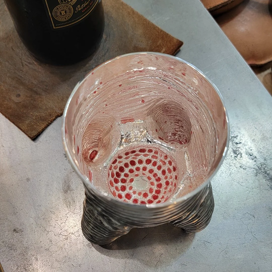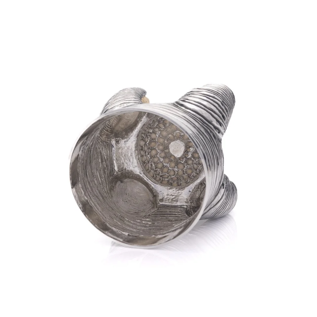 Sea Monster Stirrup Cup 007 is the most unconventional piece in the series and the only one that can stand upright on its own. While planning Unknown Echo, I wanted to test how far I could push silver through hand-hammering alone. The result is a creature that departs completely from the head-forward structure of earlier cups and instead expands outward through four tentacle-like forms. This piece represents my willingness to take risks within the series, using it as a space for experimentation and technical growth.
